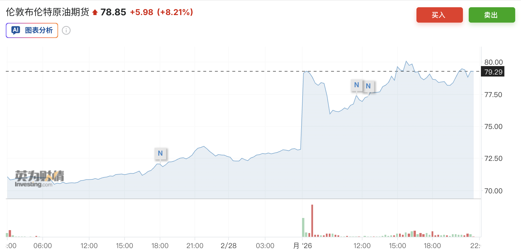 永元证券铁心发稿,布伦特原油高潮8.21%至78.85。