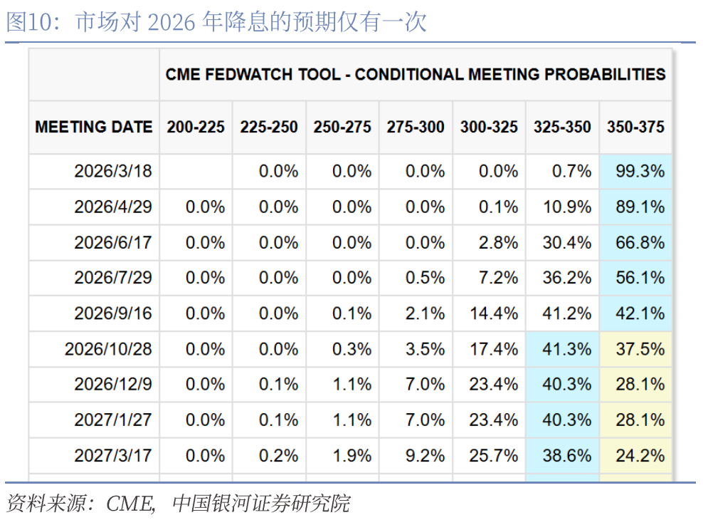 本次原油价格上行会像2022年一样引发持续的通胀反弹吗?目前来看,只要霍尔木兹海峡可以在近两个月通航,仅部分产能遭破坏导致的能源通胀并不会引发持续的通胀反弹。2021-2022年通胀全面上行的原因是多重的,除了疫情导致的全球供给不足外,美国还有过剩流动性与居民超额储蓄支撑消费,劳动市场的巨大缺口支持薪资涨价,而后两个条件在2026年并不具备。美国居民消费已经出现了K型分化,并存在跟随劳动市场放缓的风险;同时,劳动市场的供给缺口也已不存在,Waller等美联储理事反而更加担忧就业走弱的风险。在这种背景下,油价可能导致通胀预期回升,但同时也存在高油价压制居民实际消费和经济增长预期,两者的平衡可能并不会导致通胀预期和居民薪资出现可持续的抬升,那么显然也不用忧虑出现加息的情形。